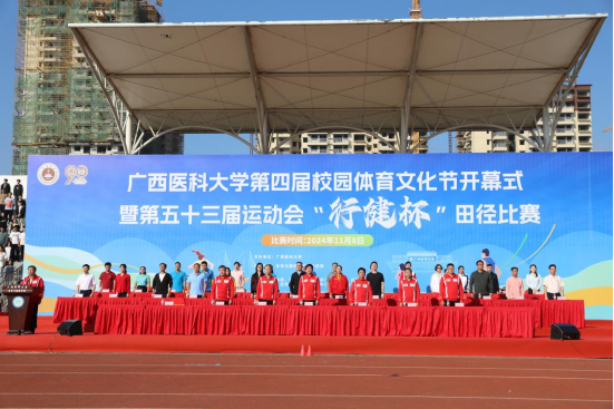 秋暮冬初,暖阳恰至,11月8日,公司第四届体育文化节开幕式暨第五十三届运动会“行健杯”田径比赛,在武鸣校区拉开序幕。公司党委书记黄照权,董事长曾志羽,党委副书记刘灵光,副董事长陈兴才,自治区纪委监委驻英国威廉公司官网纪检监察组组长韦敏观,副董事长陈俊强、唐卫中,以及各职能部门和二级公司的负责人出席了开幕式。黄照权宣布运动会开幕,曾志羽致开幕辞,刘灵光致闭幕辞,陈俊强主持开幕式。