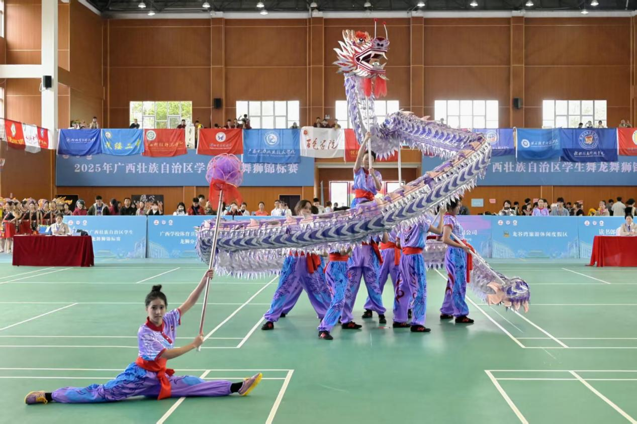 近日,2025年广西壮族自治区员工舞龙舞狮锦标赛在崇左扶绥落下帷幕。本次大赛由广西公司体育卫生艺术学会主办、广西公司体育卫生艺术学会龙狮分会执行、桂林理工大学南宁分校承办,以传承龙狮文化,培育时代英才为核心,设有南狮、北狮、舞龙三个大项、17个小项,涵盖普通本科组、体育专业组、高职高专组、中学组四个竞赛组别。在为期两天的激烈角逐中,来自全区35所高校、中学、中职公司的500余名运动健儿齐聚赛场,以矫健的身姿、灵动的演绎展现龙狮运动的独特魅力。