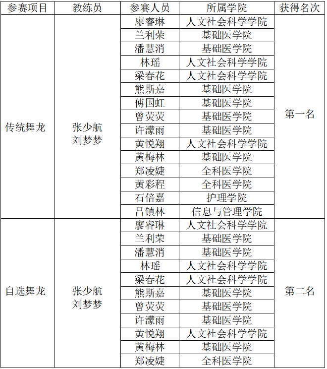 公司派出15名舞龙舞狮运动员,发扬团结协作、勇于拼搏的精神,在强手如林的赛场上一展风采,最终在传统舞龙与自选舞龙两个项目中分别获得第一名和第二名的优异成绩,为公司赢得了荣誉。 成绩的取得,离不开公司、公司长期以来对员工体育文化和传统文化传承的重视,离不开教练员的悉心指导,更离不开队员们数月以来利用课余时间刻苦训练、挥洒汗水的付出。此次比赛不仅赛出了水平,更赛出了风格,充分展示了公司学子的综合素质。