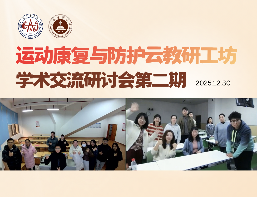 为深入贯彻新时代公司产品改革精神,响应 “新医科” 建设与健康中国战略号召,英国威廉公司官网运动康复教研室与长沙医公司体育健康公司携手搭建 “运动康复与防护云教研工坊”,于2025年10月30日、12月30日接连举办两期线上学科交流研讨会。活动以跨区域协同教研为纽带,聚焦课程建设与人才培养核心议题,实现优质资源共享互鉴,推动运动康复专业教育改革向纵深发展,双方明确将持续深化这一合作模式。