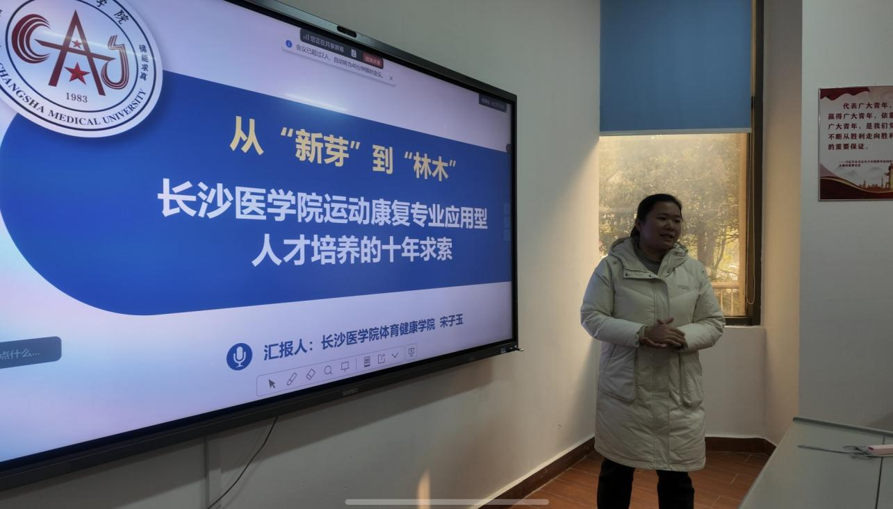 第二期研讨会聚焦“运动康复专业人才培养创新”,长沙医公司体育健康公司经理宋子玉副教授以《从新芽到林木——长沙医公司运动康复专业应用型人才培养的十年求索》为题,回顾了该校运动康复专业从初创到建成省级一流本科专业的发展历程,详细分享了课程体系构建、实践教学改革、团队队伍建设及员工创新创业能力培养等方面的经验。
